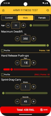 Accurate for All Categories: Supports Male, Female, and Combat scoring rules, including current U.S. Army standards. Handles profile events with logic that matches Army policy.