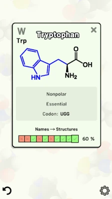 Test and improve your knowledge of the 20 standard amino acids using this app's customizable quizzes.