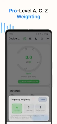 The Decibel Meter: Sound Level Meter app is designed to help you measure sound and monitor noise levels with detailed dB volume readings. Using your device’s microphone, it provides real-time data on sound pressure level (SPL), helping you understand and manage the noise in your environment.