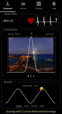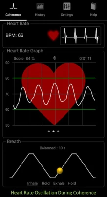 HeartRate+ Coherence PRO is the first application which includes a breathing guide and measures how well you are doing the breathing exercise via monitoring your heart rate variability (HRV) and showing the level of cardiorespiratory coherence that you have reached.