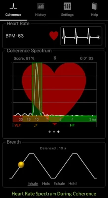 Monitor your Heart Rate and improve your Cardiorespiratory Coherence with the Breathing Guide.