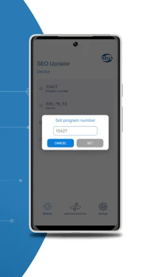 To use the app, the SEO O351 programming interface and login credentials for the updating are required. You can connect the O351 programming interface to your phone using any USB-A to USB-C or Micro USB adapter.